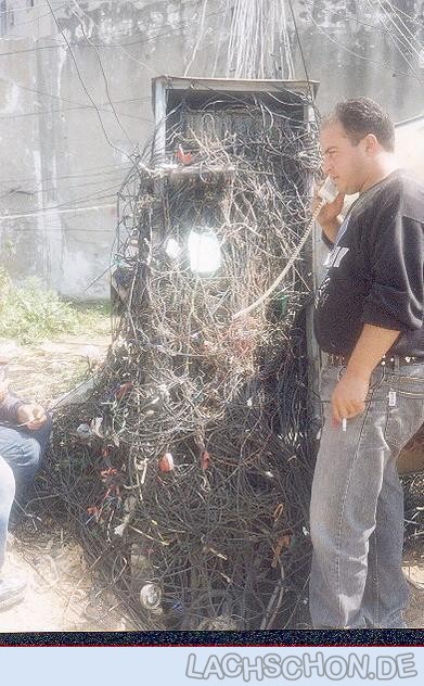 Frank M. schrieb: > Letzten Sommer geschossen :-) Da kann einem wenigstens kein Flugobjekt auf den Kopf fallen, denn es wird vorher abgefangen. ;-) Was ich auch unter Profis Monteuren beobachtete: Wenn man an so einen Ort kommt, und ein neues Kabel verlegen muß, da neigen manche dazu, es den Vorgängern nachzuahmen, also optische Anpassung, das spart auf jeden Fall viel Zeit. Man bindet 30m Kabel irgendwo an drei Punkten fest, und ist in drei Minuten fertig. Anders dauert es zwei Stunden. Kurioserweise wird durch die Zeitersparnis die Rechnung auch noch billiger. Daß sowas unzuverlässiger ist als eine saubere Installation, glaube ich nicht mal so, da stünde der Beweis noch aus. Ein Problem wird es geben, wenn mal jemand den Hinterhof bzw. Gerümpelecke renovieren und nutzen möchte. Aber es sind ja nicht alle so renovierwütig wie Deutsche. Zum Thema "Andere Länder andere Vorschriften" wird es so sein, daß man die Vorschrift hier seeeeehr großzügig auslegt, um nicht zu sagen, etwas ignoriert. Problematisch könnte es auch noch werden, wenn jemand in dem Kabelwust stolpert, und teuere medizinische Versorgung nötig wird. Dann sucht man den Verursacher. Nach zwei Jahren läßt sich da aber auch niemand mehr genau ermitteln. Ich hatte ja selbst so Dinge wie Gebäudeinstallationen, wo ich einen Kollegen mal nach Installationsdetails fragen wollte. Die Info ist dann nicht mehr heraus zu bekommen, innerhalb von zwei Jahren haben wieder andere Monteure an den Leitungen herum gewurstelt. Das Telefonnetz ist ja bis zum Übergabepunkt im Gebäude sauber und auch sauber dokumentiert. Was dahinter folgt, damit ist es ungefähr so wie mit dem Gesetz und dem Schiff auf hoher See.