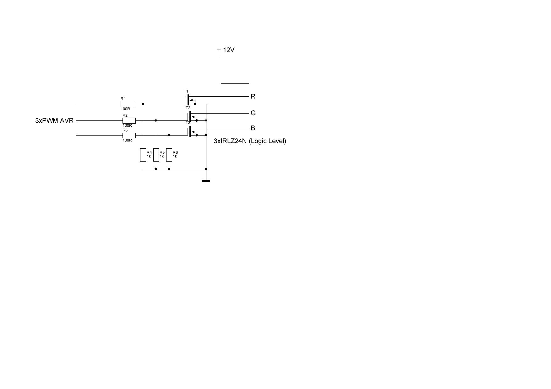 Hallo, ich plane gerade eine einfache RGB-Stripe Steuerung mit einem Mega88. Als Treiber wollte ich einen Fet des Typs IRLZ24N einsetzen. Im Anhang ist ein Entwurf der Treiber. Würde das so gehen? MfG Andi