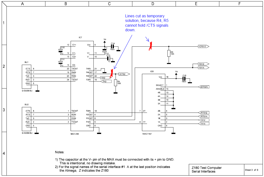 Danke für den Tip! Mir war nicht klar wo auf jener Seite das Referenzpotenzial liegt, aber V+ und V- ausprobieren ist ja einfach. Was mir jetzt auch noch nicht ganz klar ist, ob durch so eine Schaltung die Ladungspumpe des MAX irgendwie gestört wird. Die herkömmliche Triviallösung des Problems besteht ja auch darin, bei minimaler Verbindung entsprechende Brücken im Kabel zu löten, ich wollte hier aber gern erreichen dass es eben auch mit einem Kabel funktioniert bei dem nichts ausser Rx, Tx und GND beschaltet ist.