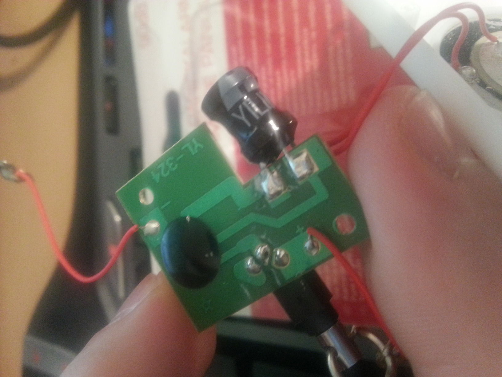 Hallo, ich bin gerade dabei mir aus einem Vibrationssensor und attiny13 eine Alarmanlage fürs Fahrad zu bauen... Als alarmgeber habe ich mir im 1 € Shop einen Handtaschen Alarm gekauft 90 db für 1 € unschlagbar Preis/leistungs mäßig. Aber will ich nicht nur basteln sondern auch was lernen. Leider konnte ich 2 interessante Bauteile nicht identifizieren und bezeichnung fehlt leider. Es geht hier um den schwarzen runden (ic?) und den Kondensator? ähnlichem Bauteil welches 4 Beinchen hat (warscheinlich in out) verstärker?. Die anderen sachen sind klar. Vielleicht hat jemand ne ahnung um was für Teile es sich handelt, weil es doch schöner aussieht wenn alles auf einer eigenen platine ist als so zusammengeschustert. Bild siehe Foto Lg Daniel