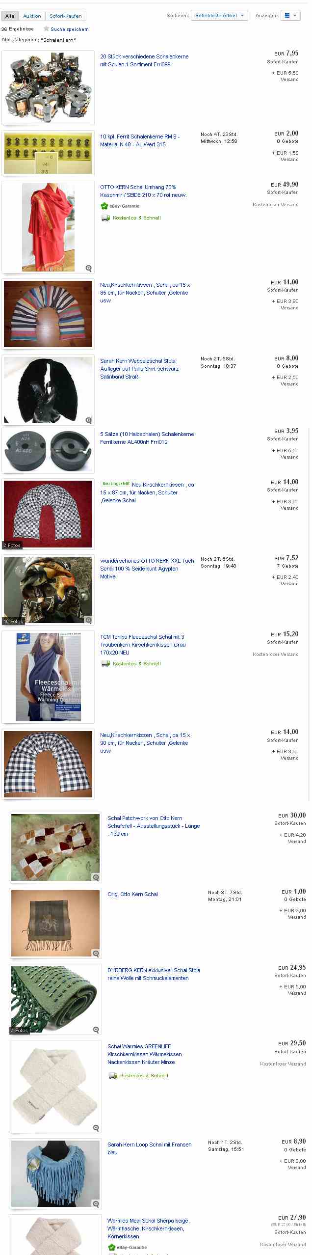 eher ist dein eBay kaputt, meins geht http://www.ebay.de/sch/i.html?_nkw=schalenkern Keine Klamotten, kein Stück.