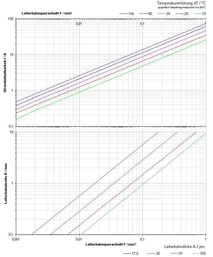 falls jemand eine Neuauflage startet, dann würde ich ein 30cm Lineal vorschlagen, da kann man etwas mehr drauf bringen und muss auch nicht alles so eng machen, aber es sollte auf jeden Fall dicker sein. Mit der Belastbarkeit muss man aber auch die Wärmeabgabe an das Board bzw. Luft beachten. Die Werte unten sind zwar beide gleich trotzdem wird die breitere Bahn mehr Wärme abführen können und ist ergo belastbarer. 0,35µm x 4mm = 140µm² 0,70µm x 2mm = 140µm²