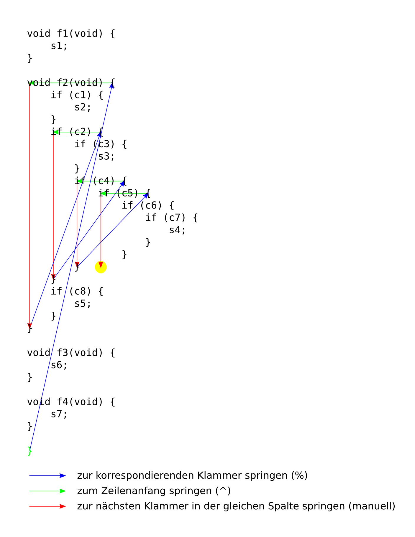 16 | 5. Steht der Cursor auf einer schließenden Klammer gehe zu Schritt 2. |