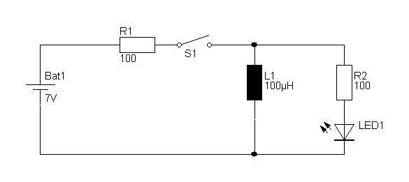 In meinem Schaltplan ist noch ein Fehler. Die LED muss umgepolt werden, da ja eine negetive Spannung induziert wird.
