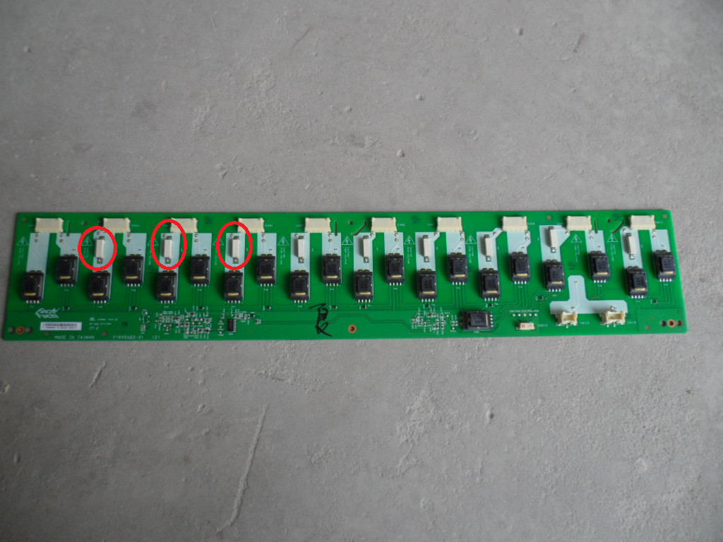 Hey alle zusammen, ich versuche grade einen älteren sony tft zu reparieren. Die auf dem Bild rot eingekreisten Bauteile pfeifen ganz unangenehm und ich würde sie gerne ersetzen. Nur leider finde ich selbst nach zwei stündiger Recherche nicht heraus wie man diese Bauteile nennt, noch wo ich sie eventuell bestellen könnte. Im Internet wird immer nur das komplette inverter board mit der nummer F10V0463-01 angeboten. ich hoffe einer von euch kann mir behilflich sein. MfG Benni