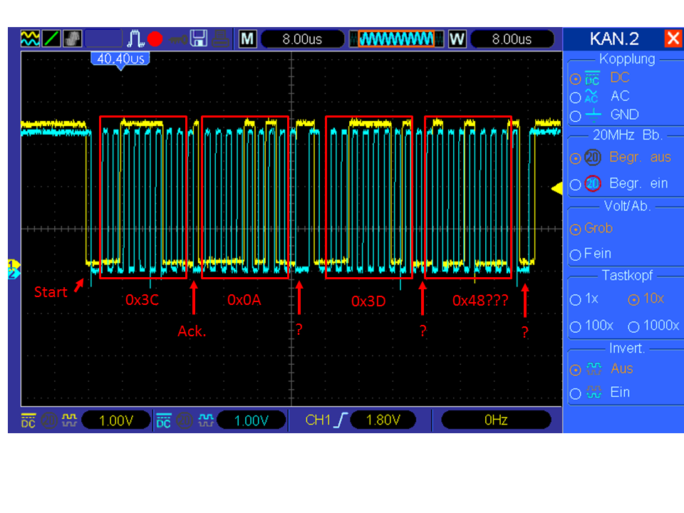 I2C-Kommunikation ist. Vor allem vor und nach 0x3D.