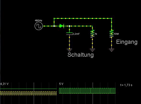 Das wäre so das einfachste, was mir so auf die schnelle durch den Kopf ging. Natürlich angepasst auf deine Zwecke (nach der Diode die Spannungsregelung etc. und die Signalpegel angepasst, inkl. Filter, Überspannungsschutz..)