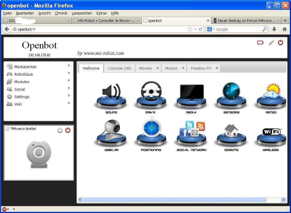 Hehe, ich werde deinen Openbot jetzt sofort hacken: 192.168.178.82. Du hättest alle IP Adressen übermalen sollen, jetzt ist es zu spät... Hehehe! Shit, klappt nicht,hat Du Firewall? ... OK, dann nehme ich halt 127.0.01, die kann ich zumindest anpingen. Hehehe! Jetzt kille ich deinen RasPi, wart nur! "*%&"*%/ç"/+CONNECTION LOST...