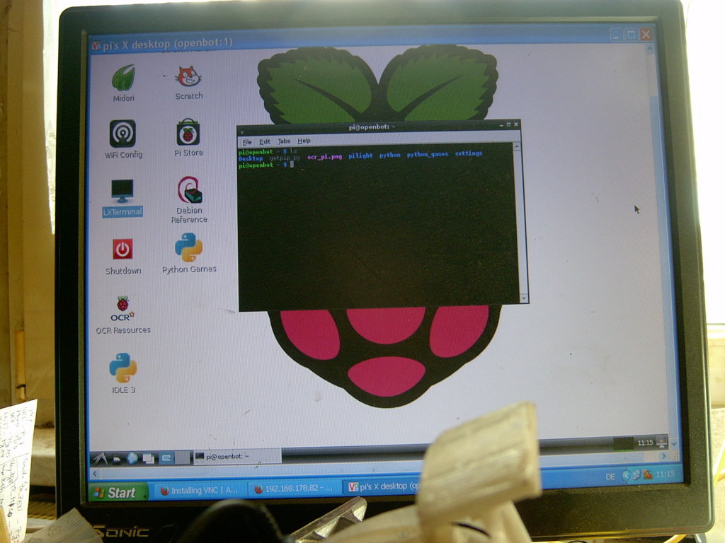 Wer das Image auf https://www.dropbox.com/sh/291w74p2ufemg8z/XrBo84qClW gezogen, entpackt und mit (Windows) Diskimager http://sourceforge.net/projects/win32diskimager/ auf SD geladen hat, muss sich mit "pi" und "rqspberrz" (kein Schreibfehler) einloggen. sodann mit sudo raspi-config auf deutsche Tastatur einstellen(ist französisch) Danach ist es ratsam, eine remote VNC Verbindung mit dem Pi einzurichten: sudo apt-get update sudo apt-get install tightvncserver und starten vncserver :1 dann kann man über LX-Terminal alle Datenpakete öffnen und anpassen ...