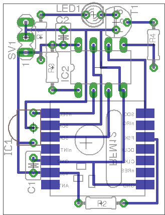 Ich wurde mal darauf hingewiesen, dass im Datenblatt des RFM12 stünde man solle unter dem Modul keine Leiterbahnen ziehen, da eine kleine Chance besteht, dass ein Via des Moduls nicht komplett isoliert / lackiert ist. Da Du aber eine einlagige Platine machst wäre das aufwändiger keine LB unter dem Modul zu haben. Könntest also notfalls einen Streifen Tesa unters Modul kleben bevor Du es auflötest...