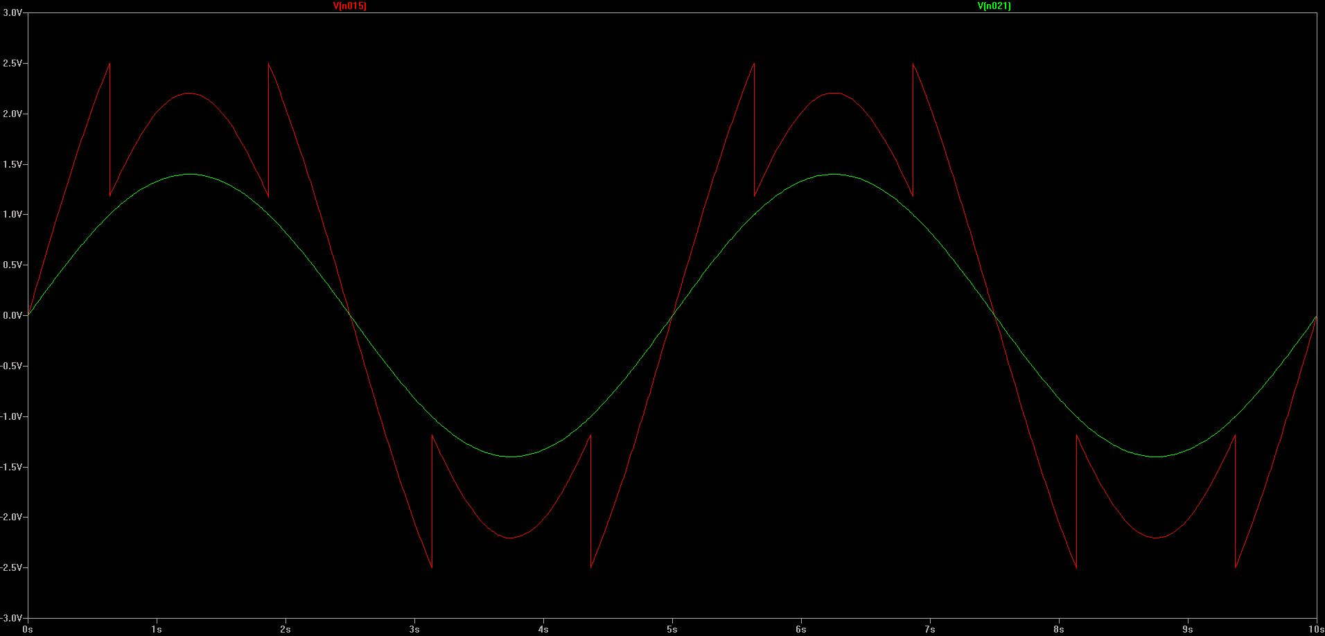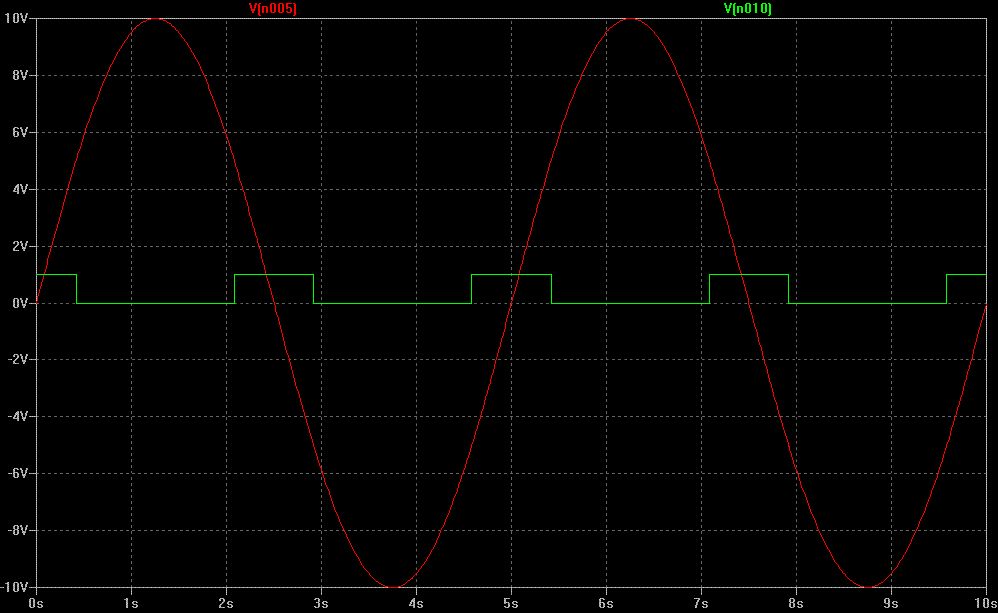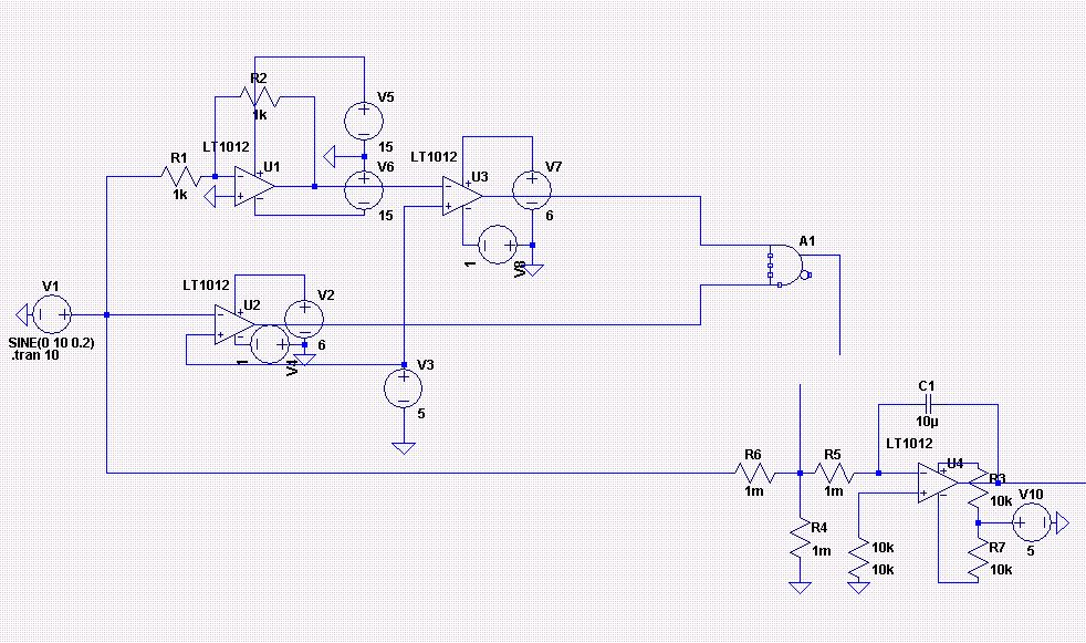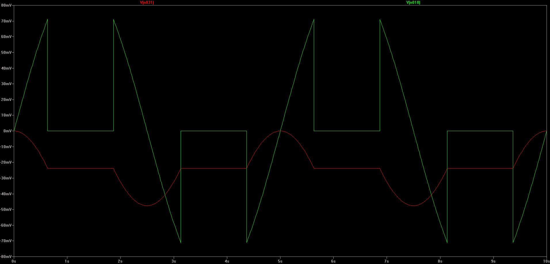 Also, wenn ich Dich richtig verstehe, soll aus einem Sinus ein Signal gewonnen werden, welches unterhalb eines gewissen Eingangssignalpegels in dieser Zeit nur diesen Eingangssignalpegel integriert. Also: 1. Aus dem Eingangssignal (bei mir rot) muss ein Schaltsignal erzeugt werden. (bei mir grün) 2. Mit dem Schaltsignal wird das Eingangssignal ein und ausgeschaltet. (bei mir blau) 3. Dieses geschaltete Eingangssignal wird danach integriert. (bei mir lila) Miss in Deiner Simulation, an welchen Stellen diese Signale noch so anliegen und wo nicht mehr. Ach ja: So wirst Du mit argen Offsetproblemen zu kämpfen haben - aber eins nach dem Anderen ... Gruß Jobst