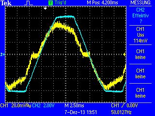 War wirklich ein Anfängerfehler, die Phasenverschiebung liegt tatsächlich so bei geschätzten 35°-40° was einem cos phi von 0,76-0,82 entspricht. Die restlichen paar Prozent gehen auf Dioden und Ansteuerung T1. Damit taugt die Villard-Schaltung doch zum Gleichrichten, jedenfall solange man die Cs groß genug dimmensioniert. Danke Ronald für den Hinweis. @Matthias L. Mit dem Fahrrad liegst du nur knapp danneben. Es geht um die Umrüstung eines Oldtimer-Motorrads aus Anfang der 60iger auf drehzahlunabhängige Blinker, Rücklicht, Bremslicht und Hupe. Scheinwerfer bleibt auf Wechselstrom.