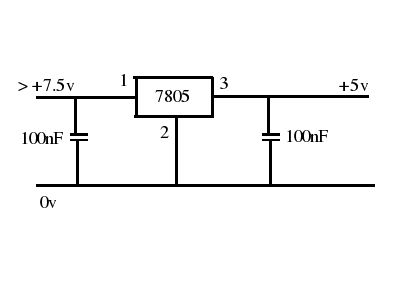 Und nicht die Kondensatoren vor und hinter dem 7805 vergessen. Bildquelle: http://www.elektroda.pl/rtvforum/viewtopic.php?p=10914250#10914250