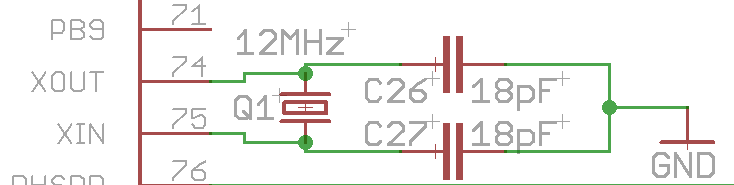 Hallo, das Problem mit dem Quartz ist gelöst er schwingt und wird auch vom Controller benutzt. Leider funktioniert USB immer noch nicht. An der Software kann es nicht liegen da Sie bei dem Evolutionboard läuft. Kann mir einer sagen wofür der PIN VBG zuständigt ist bzw. welcher pegel dort anliegen sollte. Bei mir ist immer 0V egal ob USB eingesteckt ist oder nicht. Bei dem EVO-Board ist bei eingesteckten USB an dem pin VBG ca 1.2V. Aber ich habe ja keinen einfluss auf den VBG pin oder?! So wie ich das sehe ist es eine interne Referenzspannung für USB beim Controller, leider steht im Datenblatt dazu nicht viel. Hat einer ne Idee woran es liegen könnte bzw. muss ich noch irgendwas spezielles aktivieren bei dem ATSAM3U2CA-AU Controller?