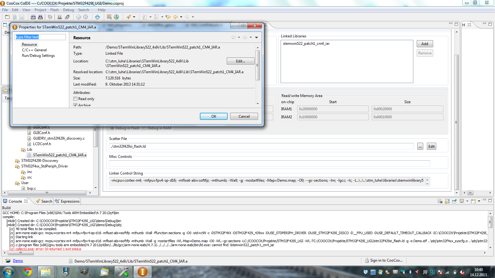 Ich weiß nicht, wo hier der Fehler steckt. ld.exe: cannot find -lstemwin522_patch1_cm4_iar oben wird die Datei aber angezeigt. Kann es sein,dass die Lib weitere Dateien braucht?