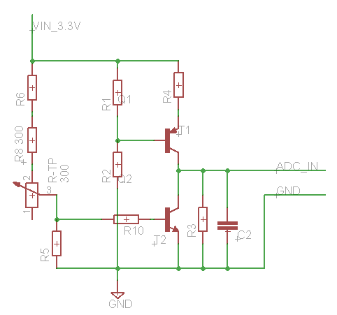 Hallo zusammen, ich möchte ein resistive Touchscreen an den ADC eines Microcontroller-Boards hängen. Ich bin neu in der Materie Elektronik und möchte das gerne lernen. Es wäre nett wenn Ihr mich in die richtige Richtung schubsen, mir die Probleme aufzeigen könntet. Alles folgende sind Annahmen und Ideen, könnt Ihr da bitte mal nachhacken. Vielen Dank. Ich habe ein 4-wire resistive Touchscreen auf einem TFT "CFAF320240F-035T (320x240)" und ein "LPC2138" Microcontroller-Board. Eine 12V 300mA DC Stromquelle versorgt das Board, das auf 3.3V reguliert wird, und die LED-Hintergrundbeleuchtung, die ich mit Transistor und Widerständen mit einem Ausgang des Microcontrollers verbunden habe. Der ADC ist spezifiziert mit - 10bit - 40kOhm voltage source interface resistance - 0-VDDA analog input voltage; VDDA ist 3.3V Zum Touchscreen gibts wenig Information, mit einem Messgerät sehe ich eine - 300-600 Ohm Spanne wenn ich mit dem Finger drübergehe Wo es mir ums Verstehen geht, möchte ich noch nicht auf Op-Amp oder TS-Driver-IC zurückgreifen. Ich benutze hier nur die Horizontale des Touchscreens. (Bild 1) R8 + R-TP1 sind der Touchscreen, ich weiß nicht wie man das genau darstellt. Als erstes habe ich einen Spannungsteiler gebaut. Ignoriere ich den Eingangswiederstand komme ich auf eine nutzbare Spanne von maximal 0,5661V; R2 = 450 Ohm ADC_IN at R_TS = 300 Ohm wird 1.4139V, at R_TS = 600 Ohm wird 1.98V; Das sind 17%/7bit am ADC oder 175 Bildpunkte. Außerdem zieht das 3,8mA +- 0,6mA Ich würde gerne mindestens 320 Bildpunkte auflösen. Ich habe weiter probiert und hatte, mit Spannungsteiler aus Transistor und Wiederstand, Touchscrenn als Steuerstrom, eine sehr gekrümmte Übertragung zum ADC. (Bild 2) Bild 2 ist wo ich jetzt stehe, wo ich mich Frage ob ich noch auf dem richtigen Weg bin. Ich habe noch keine Zahlen dran, das fällt mir noch schwer. - Links der Touchscrenn und R6 um den Steuerstrom zu senken - T1 R1 R2 stellen eine Konstantstromquelle die ich mit - R3 und T2 runterziehe Mit R10, R6 und R5 stelle ich den Offset ein, mit R3 skaliere ich die Ausgangsspannung. C2 glättet die Ausgangsspannung. Kann man das so machen, hat das Sinn? Liege ich komplett falsch oder fehlt etwas? Habt vielen Dank!