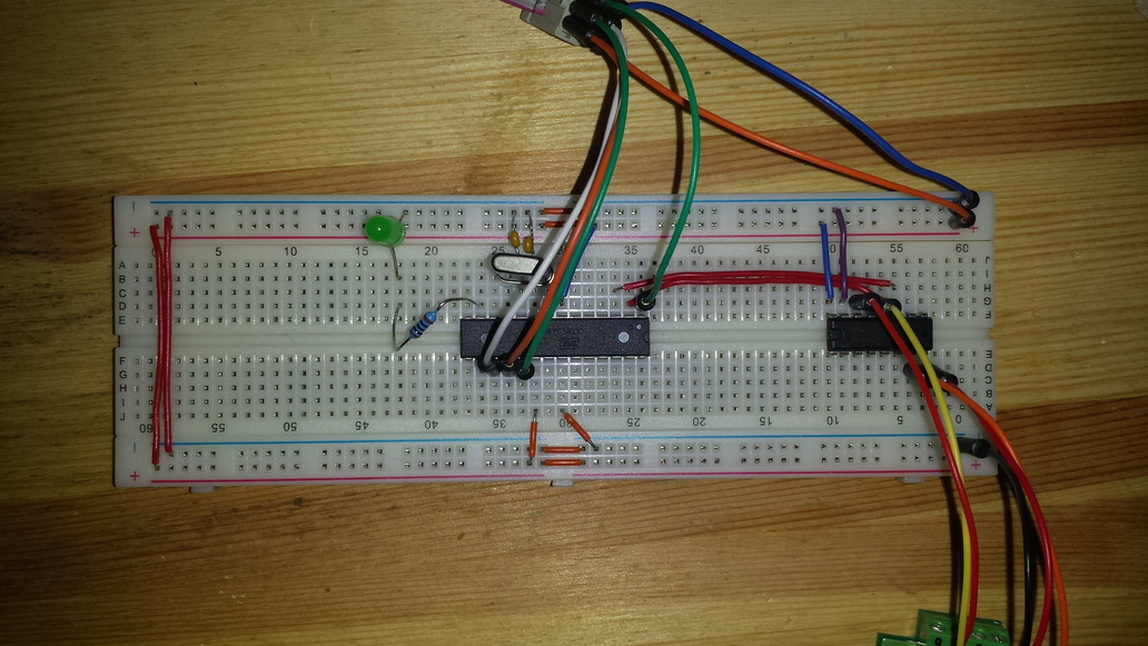 Hallo, Schaltplan im Anhang. Tut mir leid das Ich den vergessen habe. PS: Im Schaltplan ist der Quartz NICHT eingezeichnet, weil der erst später dazu kam. Am besten dazu denken.