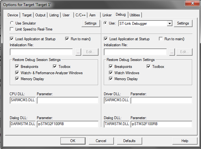 Hallo! Ich bin neu hier im Forum. Ich habe mir vor kurzem ein STM32VL Discovery Board zugelegt. Da ich vorher schon einen STM32F103 in der Schule in ASM und C programmiert habe und auf dem Board ein F100 verbaut ist, habe ich kein Problem mit der Programmierung. Ich hab ein Problem mit dem flashen des Boards. Ich habe schon verschiedene Arten ausprobiert. 1. Nur den Programmer und Debugger auf "ST-Link Debugger" geändert und versucht den µC zu flashen.(Siehe Bilder: "ST-Link Debugger" und "ST-Link prog") 2. Wie im Manual von STM beschrieben. Siehe Anhang "STM32VL_Manual.pdf" 3. ST-Link Utility mit dem Tutorial von http://en.radzio.dxp.pl/stm32vldiscovery/flashing,mcu,memory,using,st-link,command,line.html Mein C-Programm findet ihr im Anhang (main.c) Nichts davon funktioniert. Hat irgendwer mit dem Board und uVision4 Erfahrungen gemacht? Ich verzweifle schon mit dem Board und bin daher für jede Hilfe dankbar. mfg Michael