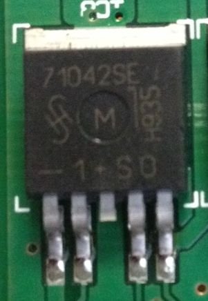 Kannst Du bitte mal einen größeren Ausschnitt der Platine fotografieren? Liegt PIN1 wirklich nur über den Widerstand an Masse?! Was ist mit PIN2? Versuch doch einmal vom Layout einen Schaltplan zu zeichnen. Groß kann das Ding nicht sein. Ich kenne solche ICs als HighSide-Switch, zumindest vom PIN-Layout.