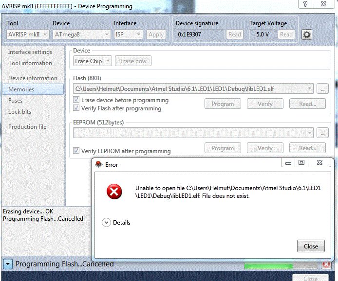 ATMEGA8. Beim Versuch zu flashen kommt die Fehlermeldung, dass keine