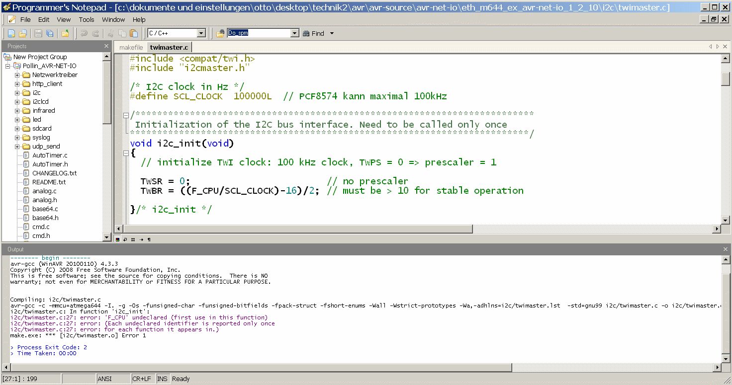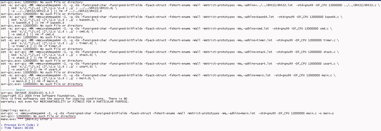 Beim Compilieren des Webservers von U. Radig habe ich das Problem, dass F-CPU (makefile.txt) in den Quelltextdateien (F_CPU.gif) nicht erkannt wird. Woran liegt das? Urspünglich war die F_CPU in der config.h. makefile ist als makefile.txt angehängt. Compiler GCC 4.3.3 Editor Programmers Notepad WinAVR
