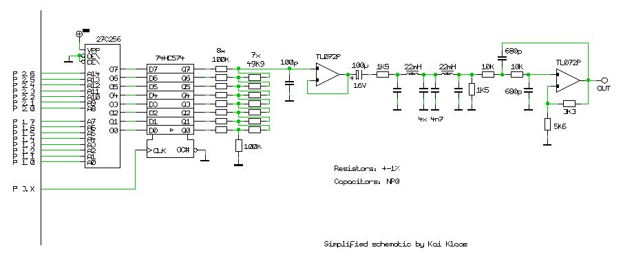 >Du hast den Ausgangswiderstand Deines R2R-Netzwerks vernachlässigt. Genau. Wenn du beispielsweise eine 100k/50k Leiter verwendest, dann hat deine Mimik bereits einen Ausgangswiderstand von 50k. Für ein RC-Filter existiert also schon ein R von 50k... >Wo habe ich also den Denkfehler gemacht, bzw. Konkreter: wie baue ich >einen RC Filter ein so dass ich hinten dann auch nochnein Ausgangssignal >habe? Ich habe das mal so wie im Anhang gemacht. Aber es gibt natürlich unzählige andere Möglichkeiten.