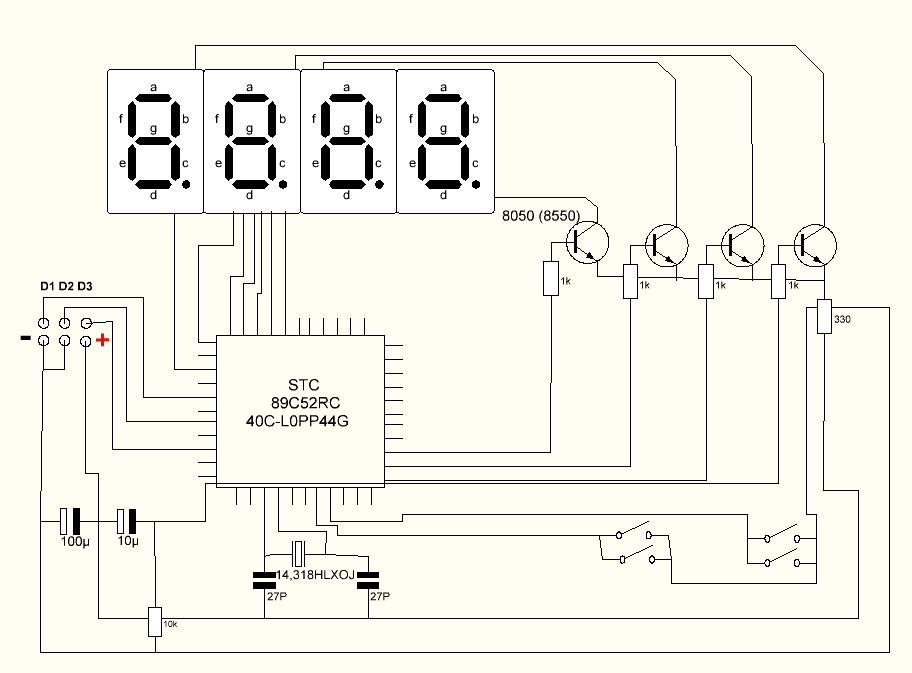 Entweder der 89C52 ist zerschossen oder dessen Programm. Oder die 4 Transistoren.