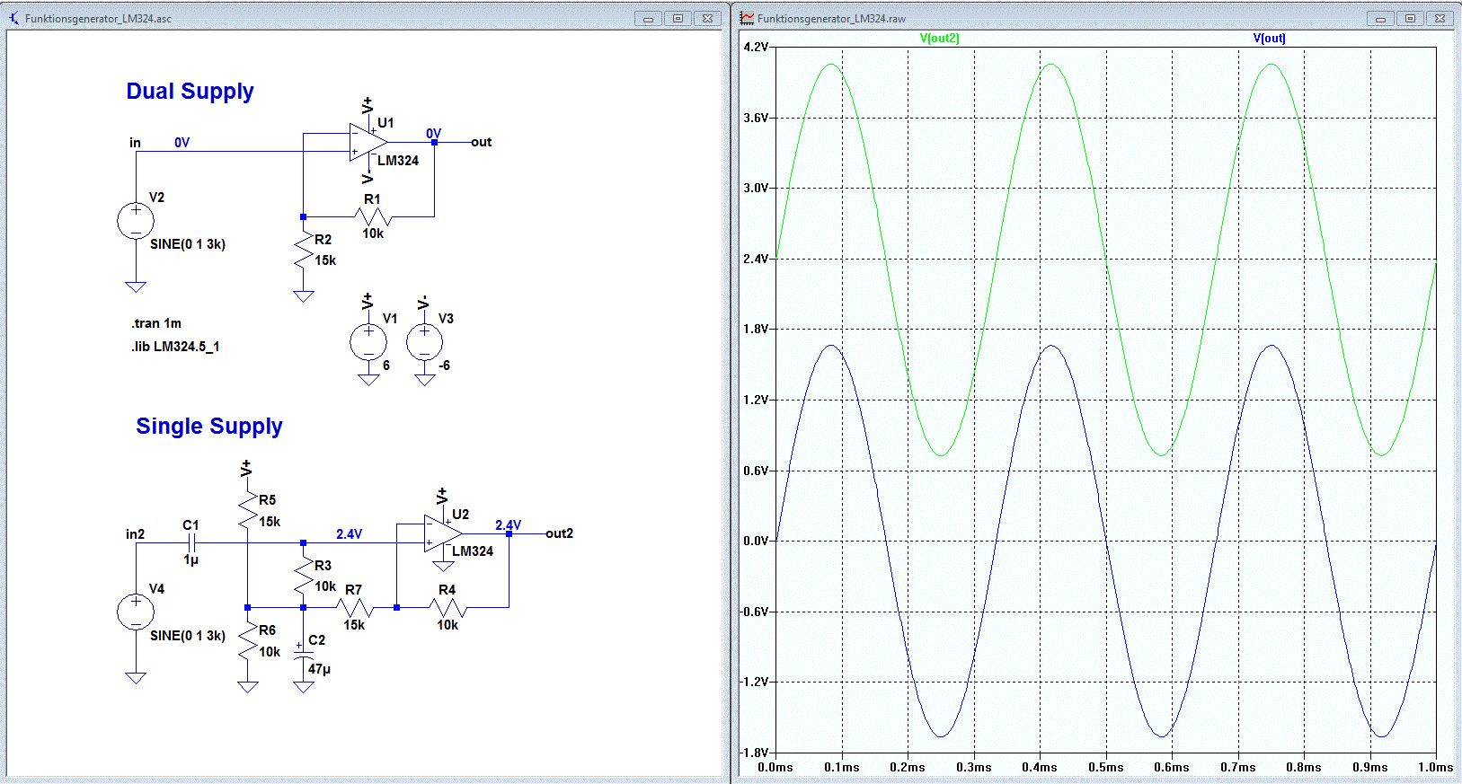 > Ich habe eigentlich ein OPV LM324, den gibt es aber nicht. Da Frage habe ich doch gestern beantwortet. Sag es halt wenn du noch Hilfe brauchst. Beitrag "LTSpice Bauteil LM 324 einbinden" Wie bereits gesagt brauchst du eine negative Versorgungsspannung in deiner Schaltung es sei denn du baust die so um, dass die mit einer funktioniert. Außerdem sollten deine Widerstandswerte eher 10kOhm und 15kOhm sein. 100Ohm und 150Ohm gehen auf keinen Fall da zu niedrig.