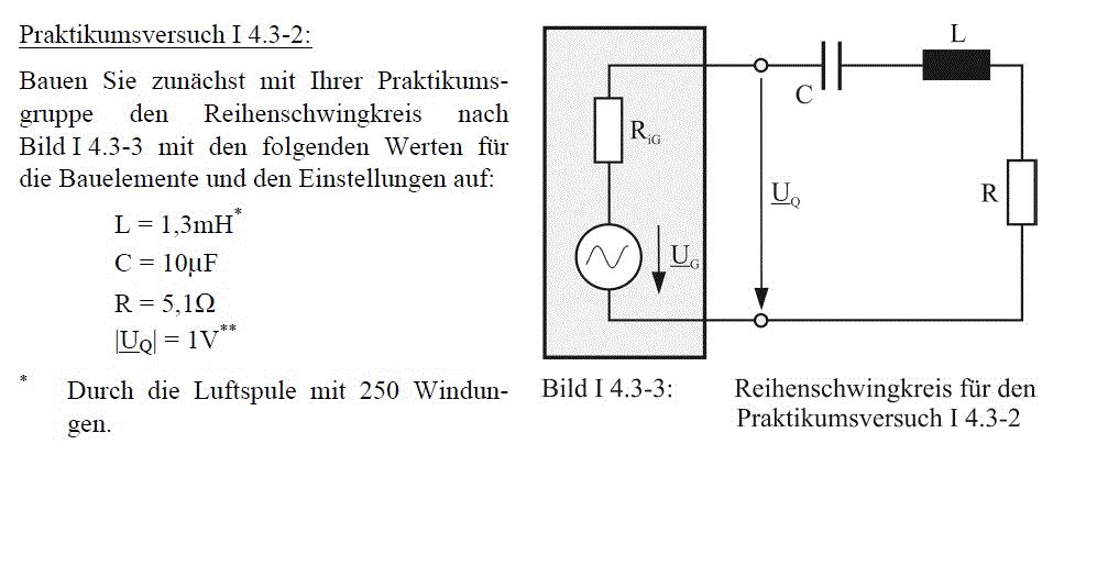 > Im Rahmen eines elektrotechnischen Praktikumsversuchs soll ein Reihenschwingkreis (RLC) untersucht werden. dabei wird schrittweise die Frequenz der Eingangsspannung erhöht (Von 30Hz-60KHz) und der resultierende Spannungsabfall über dem Widerstand gemessen. Und wo ist das Problem? Es gibt keines! In der Aufgabe steht nirgends, dass ihr mit konstanter Eingangsspannung messen sollt. Ihr sollt einfach die Frequenz verstellen und die Spannung am Widerstand messen. Dann wird gefragt warum da nicht einfach die eingestellte Spannung U0 herauskommt. Zum Schluss sollt ihr dann den Innenwiderstand des Generators berechnen. http://www.zitate-online.de/sprueche/allgemein/18383/wer-als-werkzeug-nur-einen-hammer-hat-sieht.html