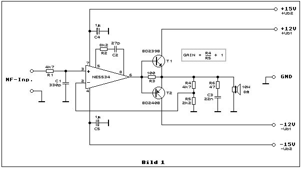 Dietrich L. schrieb: > Marvin Kamp schrieb: >> Ich dachte der Widerstand R3 würde, trotz fehlendem Ruhestrom für >> ausreichend Unterdrückung sorgen!? > Der Widerstand übernimmt im Anlaufgebiet bis ca. 7mA den Ausgangsstrom. Die 7mA sollte der OP liefern können. Ab dann übernehmen mehr und mehr die Transistoren den Laststrom. > Das hilft natürlich schon etwas. Ob es allerdings ausreicht ist eine > andere Frage und schwer zu sagen. Alles was unter ca. 1% Klirr ist sieht man auf dem Skope sowieso nicht mehr. Im Resonanzfall filtert der Schwingkreis die Grundwelle raus.