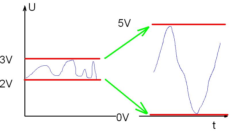 Hallo, Ich möchte einen Fototransistor an den A/D Wandler eines AVR anschleissen. Der Fototransistor liefert normalerweise eine Spannung zwischen 2 und 3V. Wie kann ich diese Spannung auf 0 bis 5V verstärken, um die maximale Auflösung nutzen zu können? (Die Referenzspannung AREF ist wegen anderen Anwendungen auf 5V festgelegt) Danke Zoltan