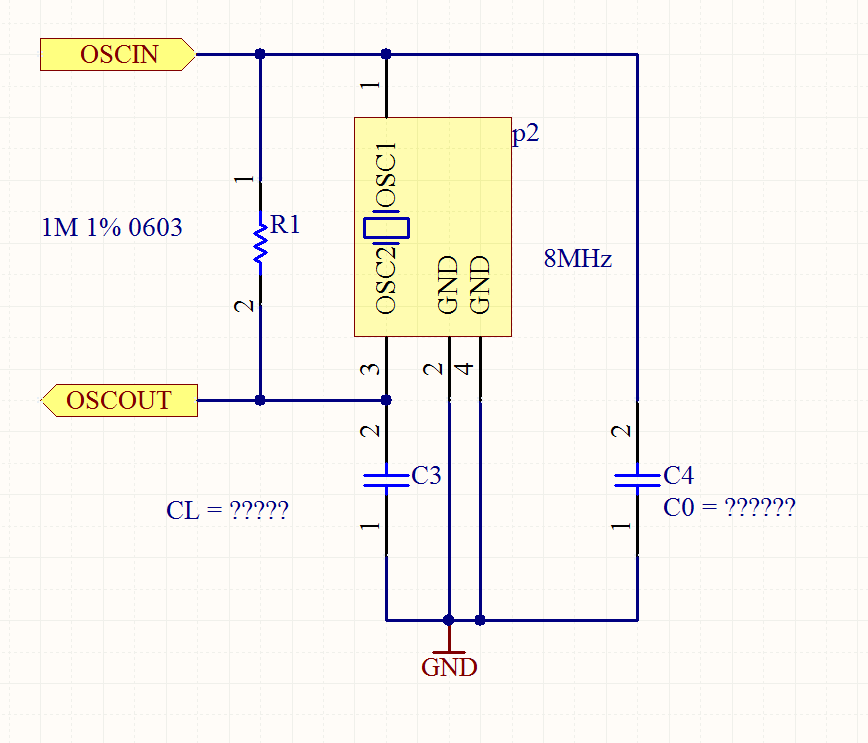 Hallo zusammen, für ein Microcontroller projekt (Leiterplatte) möchte ich gerne einen externen 8MHz Quarz anschließen (siehe Anhang). Ich habe mir den folgenden Quarz von Reichelt ausgesucht: http://www.reichelt.de/Quarze-SMD-Keramikgehaeuse/8-000000-MQ/3/index.html?&ACTION=3&LA=3&ARTICLE=84989&GROUPID=4003 Meine Frage richtet sich nun nach der externen Beschaltung. Welcher Kondensator ist normalerweise mit CL und welcher mit CO tituliert? Vermutlich müsste C4 der Load C und C3 der SHunt C sein? Auf der Reichelt Seite steht nun für Load capacity 12 pF im Datenblatt jedoch: Shunt Capacitance (C0): 2pF to 4pF typical, 7pF maximum Load Capacitance (CL): Series or from 10pF to 32pF Wie dimensioniere ich also die beiden 0603 Keramik Cs? Ist der WIderstand R1 überhaupt nötig? Vielen Dank. MFG