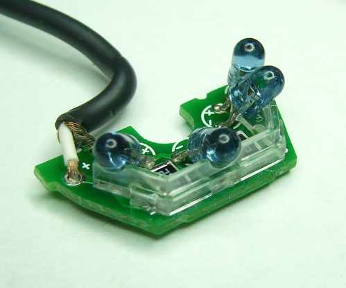 > Erkläre doch mal, warum das nicht geht. Wozu sind die anderen beiden Anschlüsse denn vorgesehen? Das Gerät sendet über drei Mono Klinke Anschlüsse IR Signale die vom Tablet oder Smartphone kommen. Die ersten Beiden sind für 1 LED vorgesehen die man direkt an das zu steuernde Gerät geklebt werden. Der dritte Anschluss kann so eingestellt werden (webfrontend) das auch ein IR Blaster(IR Sender mit grosser reichweite 1 bis .. LEDs) betrieben werden kann. Bild 1: IR Blaster offen mit 4 IR LEDs und Vorwiderständen 2x 8R2 8,2 Ohm. Bild 2: IR Blaster geschlossen ,und IR LED offen zum kleben ohne Vorwiderstand. > Wie sieht die Innenschaltung des Gerätes aus, Das kann ich dir nicht sagen und wegen der Gewährleistung möchte ich ihn nicht öffnen. Aber da du gefragt hast bin ich jetzt so schlau das der Wiederstand für die LED schon im Gerät ist. > und wie sieht die Schaltung des IR-Blasters aus (sieht simplen nach 4 LED's in Reihe aus, aber sicher ist das nicht)? Eigentlich schon beantwortet mit dem Bild 1. ------------------ Ich habe diese Blaster schon verlegt und möchte sie für das neue Gerät nutzen. Sie sind in der gegenüberliegenden Wänden (2 Räume) zu den Geräten angebracht. Genau in der Ecke von Decke und Wand. Das funktioniert mit der Harmony 900 Fernbedienung Super. Leider benutzt die Fernbedienung Funk mit einem zu schwachen Signal.Alle versuche das zu verbessern sind gescheitert. Deswegen über Wlan - LAN mit dem Gerät ( Itach IP2IR ). Mit der Signalverstärkung kann ich drei Räume versorgen.