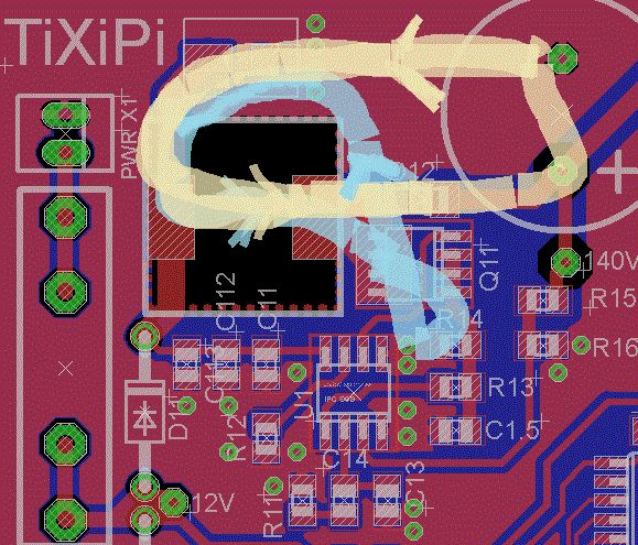 Danke für die schnelle Antworten. @ Falk Schaltplan und Layout lade ich hier noch mal hoffentlich größer hoch und zeichne gleich die Strompfade ein. Beim Layout hab ich auch auf kurze Maschen, eine gute Masseanbindungen (mehr als nur ein Via), dicke Leiterbahnen für Geringere Induktivität, …. Die externe Beschaltung hab ich schon üerpruft und bin auf die gleichen Werte, wie das Tool von TI, gekommen. Werde aber noch mal spezial die Timingkondensatoren anschauen. @ Helge Was sind Q-Typen – Transistortypen? Es gibt keine externes Sync Signal.