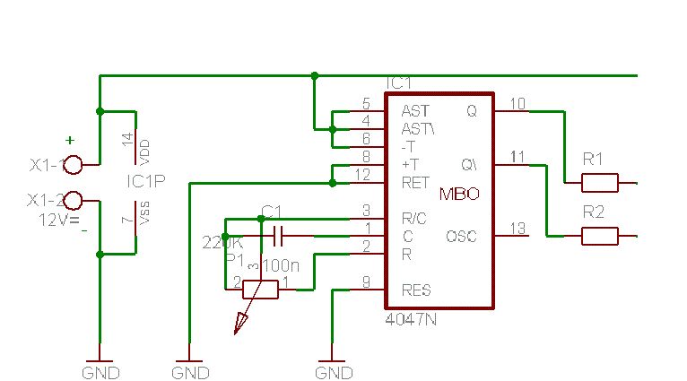 Hallo die schaltung im anhang ist bereits fertig aufgebaut und funktioniert recht gut von schnellem blinken bis "durchgehendes" leuchten (12V lampe) durch den kondensator und den wiederstand kan man ja die frequenz einstellen jedoch 1. was ist die maximale Frequenz ? 2. Grösserer wiederstand = Kleinere oder grössere frequenz? 3. Grösserer Kondensator = Kleinere oder grössere frequenz? 4.was ist der gröste/kleinste mögliche kondensator/wiederstand Ich möchte damit 2 mosfets ansteuern (HRF3205)welche 200A 35V schalten sollen da die mosfets je 100A dauerhaft und 390A für 8ms können setze ich einfach 2*3in paralell Vielen dank für antworten Fokus