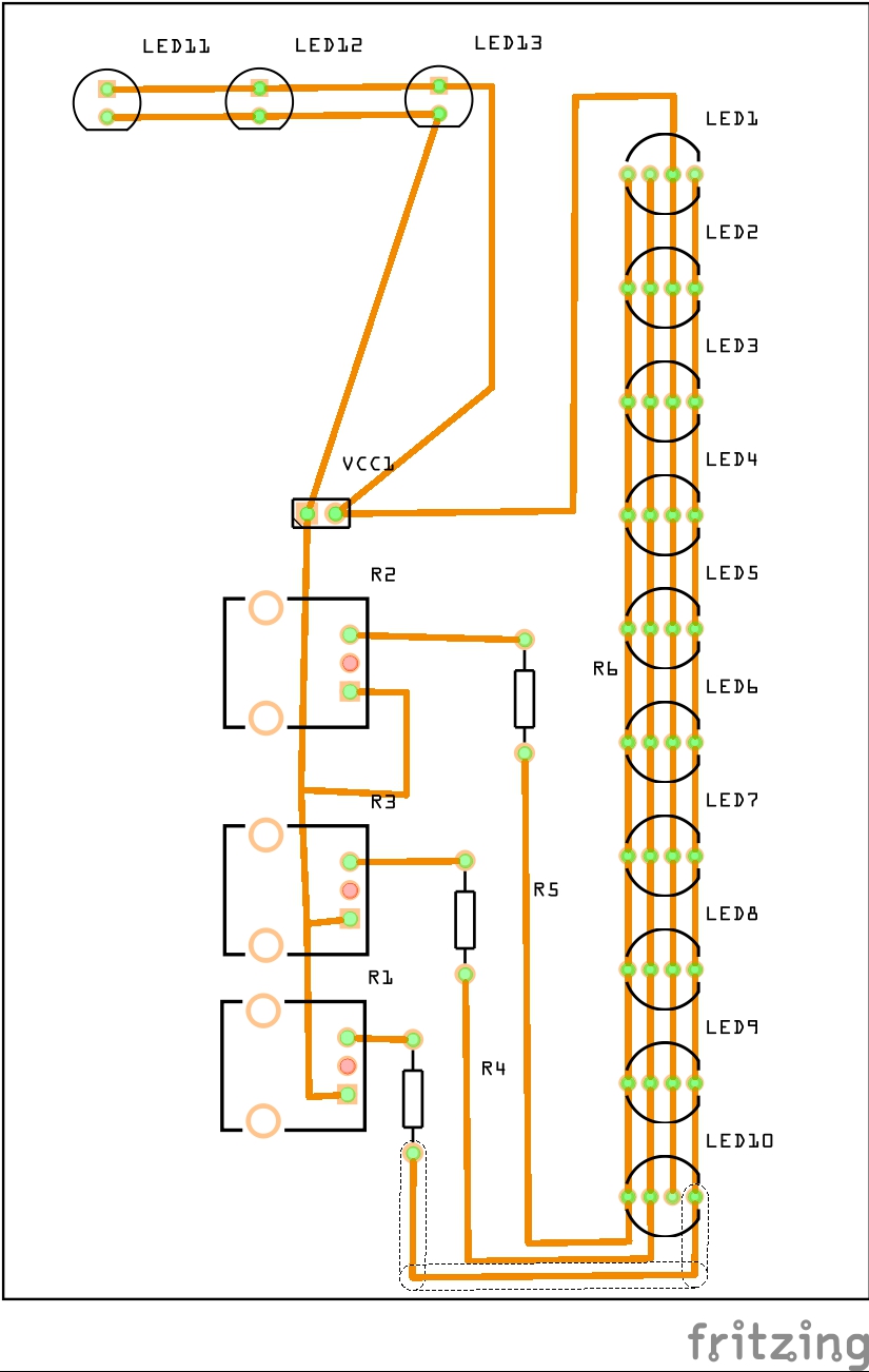 ich bin 13 und Vorwiderstände habe ich doch genommen außer für die 3 12V Lampen links. (oder nicht ?)