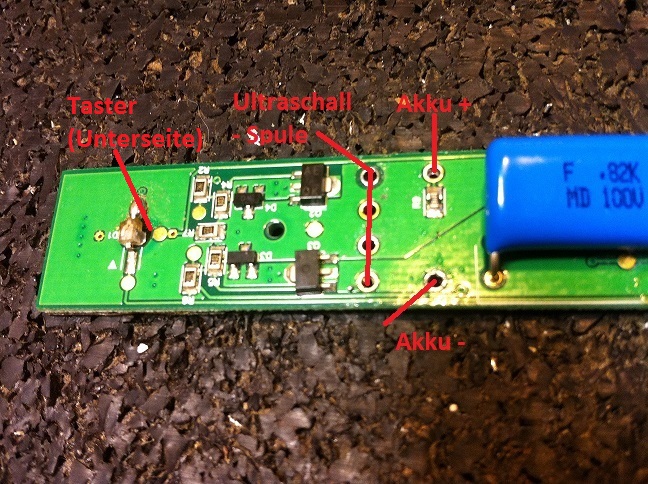 Die Kabel habe ich testweise dran gelötet. Das Mittlere geht an den Akku, das rechte an die Induktionsspule. Ist in den Fotos im ersten Beitrag auch nochmal zu sehen.