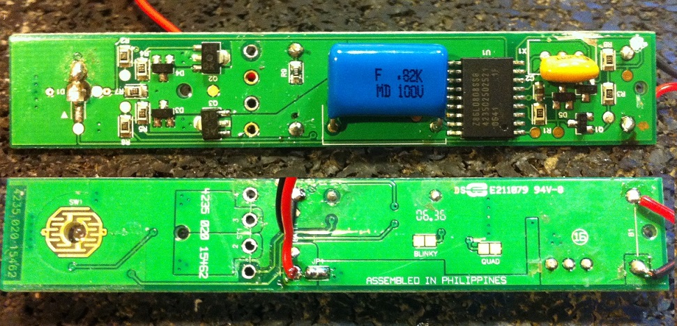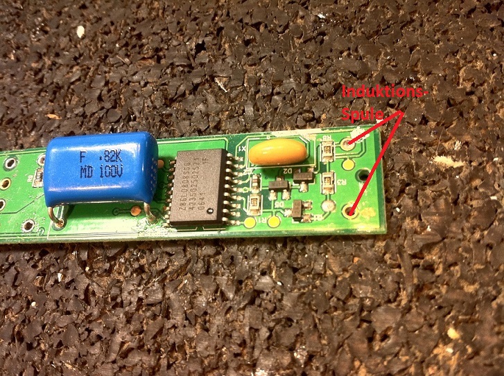 Am liebsten wäre es mir sogar, wenn man (Asche über mein Haupt) die Platine ca. an der Stelle (links) wo die 4 Bohrungen für die "Schall-Spule" ist abtrennen könnte. Dann hätte ich mehr Platz im Gehäuse für den neuen Verbraucher. Kann man das anhand der Fotos feststellen, ob die Teile links der 4 Löcher für die Funktion des Ladens von nöten sind?