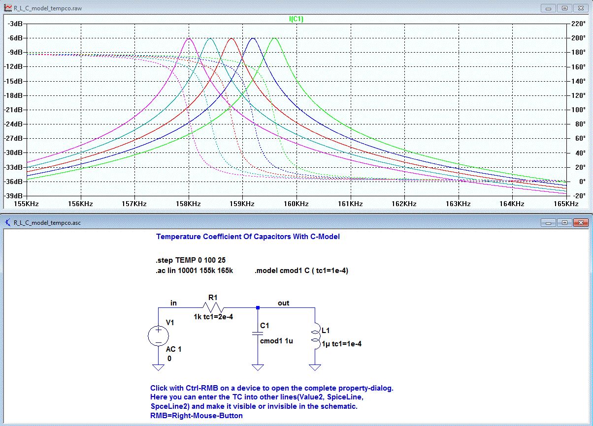 .model cmod1 C(tc1=1e-4) tc1 bezieht sich auf das cmod1 odr wie immer du das nennst. Du willst noch einen weiteren TC oder gar noch quadratisch? .model cmod1 C(tc1=1e-4 tc2=1e-5) Infos eventuell in pspcref.pdf oder in (H)SPICE manuals. Hier steht es auch noch: http://ltwiki.org/index.php5?title=Undocumented_LTspice#Capacitors