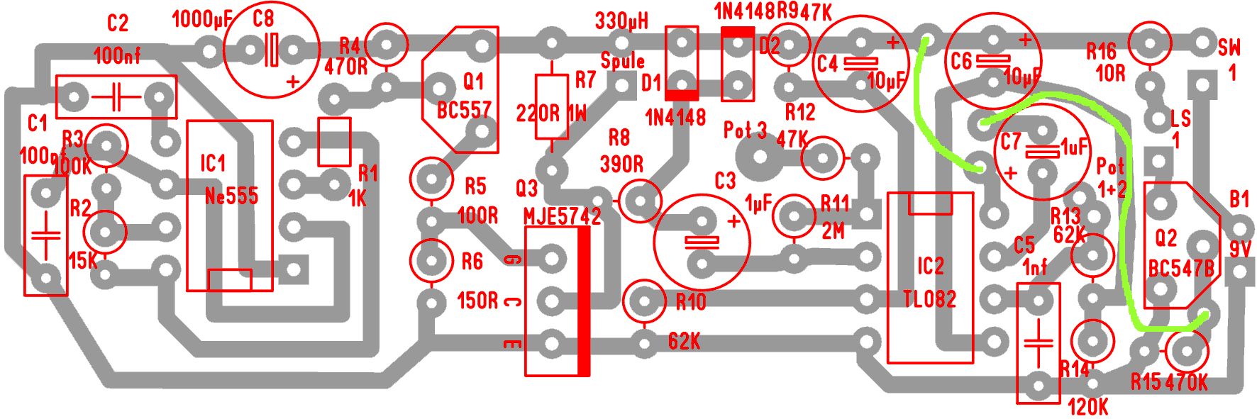 hallöchen hab vorhin einige änderungen umgesetzt spuckt schon mal ein paar töne aus natürlich wird das layout noch entsprechend geändert ich nehme mir eure ratschläge sehr zu herzen für das protoboard sollte es aber eichen wenn ich es mal mit und mal ohne abblockkondensatoren versuche indem ich diese testweise auf der leiterbahnseite anlöte ich will euch nicht verkaspern oder dergleichen im moment bin ich dabei mehre pinpointer auf der basis eines pi detektors nachzubauen ziel ist minimaler aufwand, höchste nachbausicherheit außerdem soll am ende vermittelbar sein wie das ganze überhaupt funktioniert pinpointer mit vergleichbarer leistung liegen zwischen 200-400€ ich hoffe dass ich für den hobbybastler / sondler irgendwie bis zur mitte diese jahres ein diy lösung anbieten kann die für die fertigen pi pinpointer weit unter 100€ kostet am ende soll es so aussehen http://www.youtube.com/watch?v=3BEwNfGwnZg http://www.youtube.com/watch?v=9eG3-gmh7tA warum ich hier poste? ich möchte mir eben wissen aneignen meine ausbildung ging leider nicht in die elektronik richtung aber dafür habe ich es als hobby für mich entdeckt bin jetzt anfang 30 ( ich hoffe ich zähle damit nicht zu den spam troll kiddies) und mir liegt es wirklich fern euch nicht ernst zu nehmen gruß