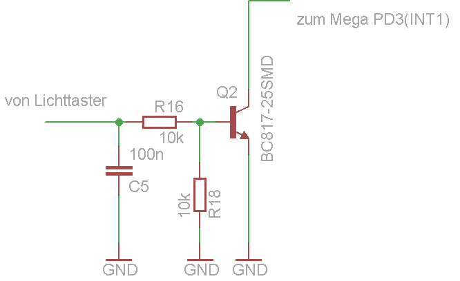Hey, müsste C5 nicht eher parallel zu R18? So müsste der Lichttaster ja eine recht hohe kapazitive Last treiben. VG, Thomas.