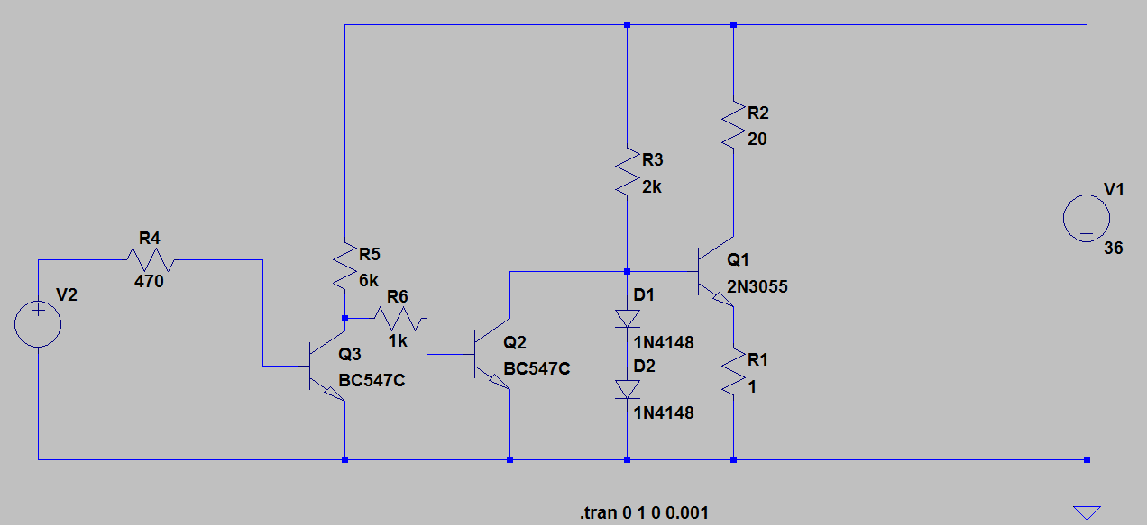 Der 20Ohm widerstand soll die LED darstellen weil in dem Programm ist keine LED mit 33V U_F vorhanden .....zum simulieren habe ich einen Widerstand eingesetzt.