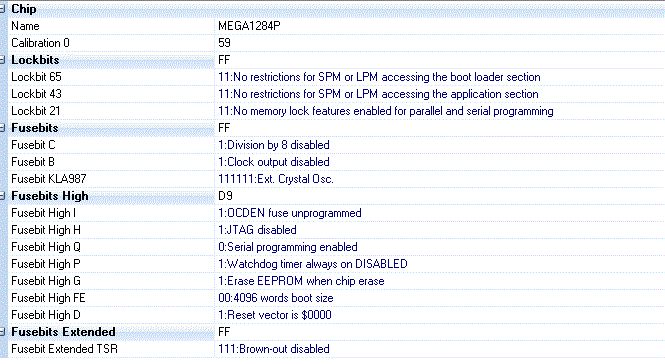 Der Vollständigkeit halber einmal die Fuses. Die Hardware wir von einem STK500 gebildet. I2C Bus ist etwa 7 cm lang, aber läuft wie gesagt einwandfrei in anderer HW Umgebung mit einem PIC...