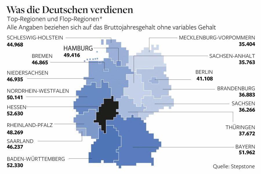 MaWin schrieb: > > Da gibt es ganz andere Zahlen, die aus der Erfahrung wesentlich > realistischer sind: > > http://www.spiegel.de/karriere/berufsleben/gehaltsreport-einkommen-fuer-informatiker-in-der-it-branche-a-832124.html Und wo weichen die Zahlen von den bisher genannten ab? Als durchschnittliche Jahres-Brutto-Werte für Mitarbeiter ohne Personalverantwortung mit Berufserfahrung >10Jahren ist dort zu finden: IT-Berater: 73.285 SAP-Berater: 76.927 Software-Entwickler: 64.789 F&E: 74.935 http://www.spiegel.de/fotostrecke/gehaltsreport-was-informatiker-verdienen-fotostrecke-82125-2.html Wenn man da jetzt noch ein paar Mitarbeiter mit Personalverantwortung einrechnet, kommt man auch bei den Entwicklern locker auf 75k.