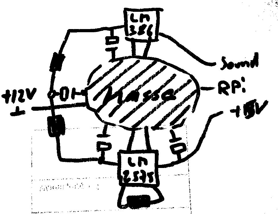 Nun, du hast vermutlich richtig analysiert, daß der Schaltregler LM2575 den Audioverstärker LM386 stört und diese Störung über die Versorgungspsannung kommt, übrigens sind das immer Plus und Masse. Ich nehme an, der LM386 nutzt die 12V die auch in den LM2575 gehen, obwohl so ein LM386 ja auch die 5V nutzen könnte. Woher kommt deine Versorgungspannung? Aus einem Steckernetzteil oder Bleiakku ? Dann solltest du die Quelle besser puffern. Gleich an der Stelle der Platine an der das Kabel mit den 12V ankommt, setzt du einen LowESR Elko von sagen wir 100uF. Dahinter verzweigen sich sowohl Masseleitung als auch Plusleitung zum LM386 und LM2575. Da LEIDER die Masseletung wieder über das RPi-Board verbunden wird, darfst du dir keine Spannungsdifferenz auf der Masseleitung einfangen, also nimmst du eine extrem breite Leiterbahn, eine ganze Massefläche, zwischen beiden Schaltungsteilen, wie ein grosser Kupferfleck an den von Süd der Elko der Eingangsspannung liegt, nach Ost je eine Masseleitung zu jedem Anschluss des LM386 geht der Masse braucht, nach Nord die Masseleitung zum RPi und im Westen für jeden Anschluss an Masse des LM2575 auch eine Leitung geht. Plus führst du zum LM386 in der Standardschaltung aussen von Süd nach Ost, eine Plusleitung von Süd aussenrum zum Schaltregler nach West. In diese beiden Leitungen kannst du Drosselspulen einbauen, aber eine "grosse" muss nicht unbedingt eine gute sein, die Drossel muss vor allem die Freqeunz des Schaltreglers dämpfen, dafür können grosse Spulen zu langsam sein. Du hast glücklicherweise ein Oszilloskop, kannst also die Wirkung unterschiedlicher Spulen überprüfen. Hinter der Drossel gehört direkt am Schaltregler und direkt am Verstärker noch ein Elko, beim LM386 nicht kleiner als der Ausgangselko. Der Kupferfelck sorgt gleichzeitg noch für einen möglichst grossen räumlichen Abstand zwischen verstärker und Schaltreghler, die Schaltreglerspule sollte nicht in die Verstärkershaltung reinstreuen. Um deren Empfindlichkeit zu verringern, sorge in den beiden Teilschaltungen selbst für möglichst kurze Leiterbahnen, vor allem keine grösseren eingereiten Stellen. Ja richtig, das geht nicht auf Lochraster, man braucht eine geätzte Leiterplatte. Aber durch edn grossen Massefleck nicht unbedingt eine zweiseitige.