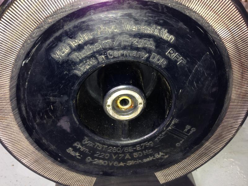 Hallo zusammen, habe einen alten Trennstelltrafo RFT TST 280/6 in der Bucht geschossen, nur den Trennstelltrafo ohne Gehauese etc., dem fehlt allerdings die Kupplung fuer den Stromabnehmer und einer der beiden Kohlestifte ist abgenutzt. Thalheimer-Trafowerke heisst die Firma heute, hab ich natuerlich gleich angeschrieben aber dieses Modell wird seit 33 Jahren nicht mehr hergestellt, Ersatzteile gibt es dort keine mehr. Waere aber wirklich schade um das schoene Stueck.. zur Not koennte ich natuerlioch den "Stell" Teil fixieren und haette dann einen normalen Trenntrafo. Falls jemand so ein Geraet hat wuerde ich mich sehr ueber Fotos freuen die zeigen wie die fehlende Kupplung aussieht, auch andere sachdienliche Hinweise sind sehr willkommen! Fotos kann ich einstellen sobald ich zuhause bin, falls gewuenscht.