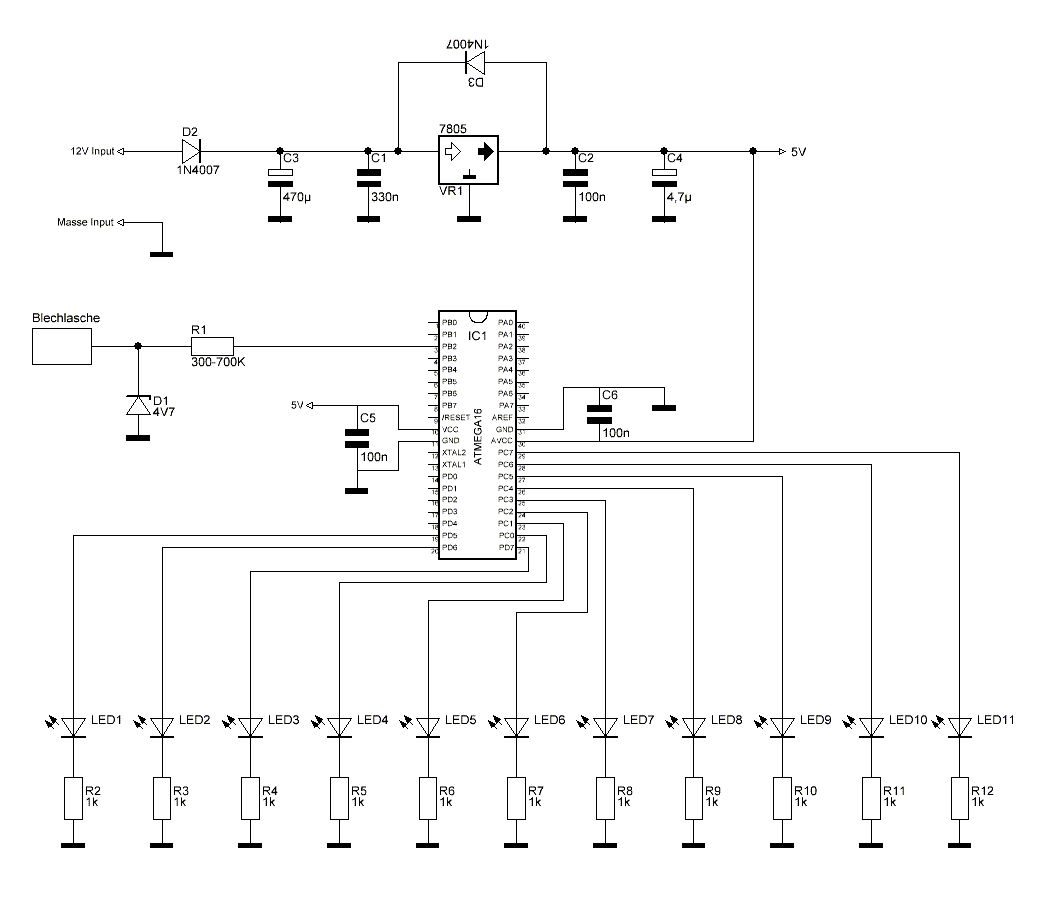 Peter K. schrieb: > Also hier mein Bascom Code und die Schaltung Ohoh, die Schaltung ist falsch, das ist der maximale Härtetest für die Z-Diode. Der Widerstand gehört zwischen die Z-Diode und die Blechlasche. In deiner ursprünglichen Schaltung war der Widerstand noch an der richtigen Stelle.