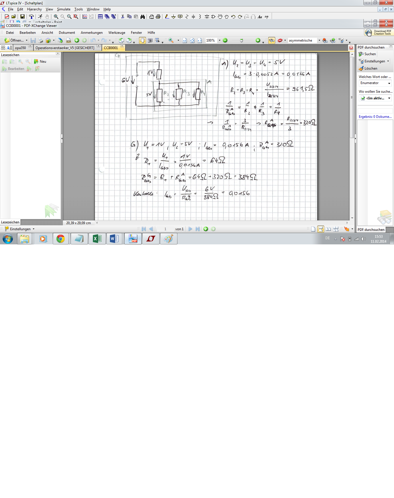 Hallo Tom, zunächst Danke für dein Posting. Ich habe mich gestern zu kurz gefasst, deshalb hier eine etwas ausführliche Beschreibung meines Vorhabens. Die Operationsverstärker sollen mit 5V (6V halten die nicht aus) betrieben werden, die ich ursprünglich mit Hilfe einer 6V Batterie und einem Spannungsteiler bereitstellen wollte. Dazu habe ich eine Rechnung aufgestellt (siehe Anhang). Die Rechnung müsste an sich stimmen. Allerdings habe ich einfachheitshalber angenommen, die OPVs wären die Widerstände R2 und R3. Sind sie leider nicht. Ich glaube also nicht, dass mir die Rechnung weiterhilft. Außerdem sind die OPV vom Typ SS und R2R. Dabei wollte ich beide OPV mit derselben Batterie betreiben. Allerdings weiß ich nicht, ob das so einfach geht. Die OPV können maximal 10mA aushalten, ihr normaler Betrieb läuft aber bei 5,2 mA. Das Signal will ich mit einem ADC eines uC wandeln, der mit der internen Referenzspannung von 2,65 V laufen soll. Deshalb wollte ich außerdem den mittleren Pegel auf etwa 1,3 V (1,5 reicht auch)anheben. Das wollte ich mit einer zweiten Batterie und einem weitern Spannungsteiler bewerkstelligen. Ich möchte das ganze auf einer Lochrasterplatine mit einer Massefläche zusammenlöten. Ich frage mich jetzt aber, wie ich das am besten bzw. am einfachsten umsetze. Genauer gesagt frage ich mich, welche Bauteile an die Batterie kommen, welche an die Massefläche sollen. Ich würde gerne die GND-Symbole an die Massefläche anschließen, alles andere an die Batterien bzw. Spannungsteiler. Würde das so wie auf dem Screenshot gezeigt funktionieren? Da ich ein Anfänger bin, kann ich das nicht ganz glauben. Könntest du oder ihr mir vielleicht dabei helfen, zu verstehen, wie ich die Schaltung richtig anschließen müsste. Badebeng