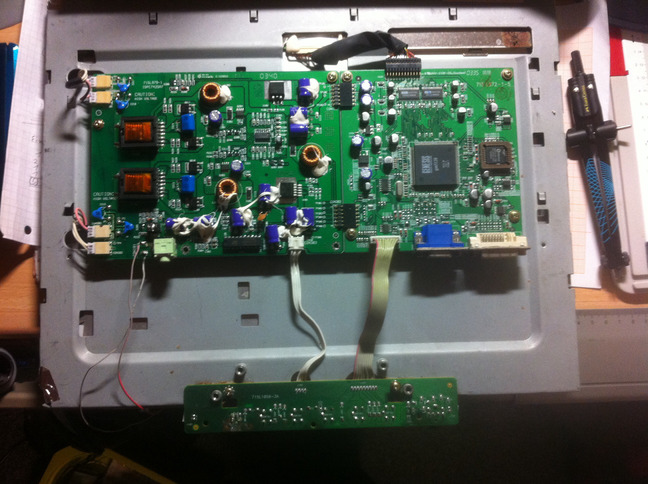 Hallo, ich suche den Schaltplan zu einem Bildschirm, den ich von einem Bekannten habe. Leider ist ein Taster herausgerissen. Keine großen Schäden, aber eineUnterbrechung des Stromkreises. Den Ersatz habe ich schon, nur das anlöten erweist sich als schwierig. Das Gehäuse ist weg, ich hab keine Ahnung welche Marke und Modell. Die einzigen Hinweise auf der Platine: Hauptchip:Genesis gm5120, daneben ein kleinerer Chip von inbond und am Rand der Platine steht,,94V-0GW-06". Den Steckplatz für die Stromversorgung hab ich durch 2 Kabel ersetzt, also nicht wundern.