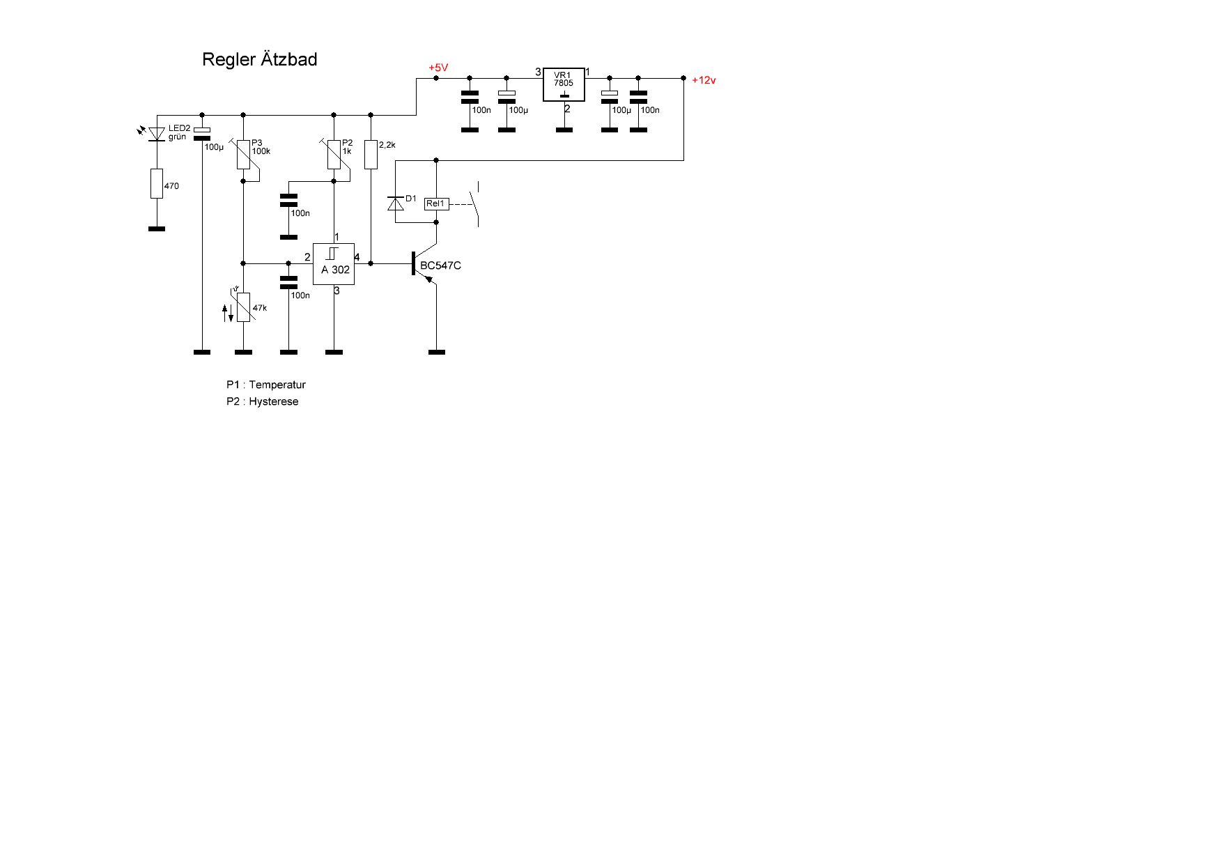 Pi Er schrieb: > andere idee: eine art controller dran gehangen der ab einer bestimmte > ohm zahl dann den anderen kreis schließt. nennt sich schmittrigger. den kannst mit nem opamp oder transis selber bauen oder man nimmt nen passenden ic der sowas schon von hause ist. http://www.kne-shop.de/shop/show_product.php?products_id=413&SESS=dygmsgdj 0,1teuro sind voll ok. der ic eignet sich für thermostaten recht gut. die beschaltung ist sehr einfach. schaltplan kannst haben. was b.z.w. wie soll geschaltet werden? es wird zu warm-->das abgefallene relais zieht an und schaltet den kompressor von kühlschrank ein. wenn kalt genug halt wieder aus. oder es ist kalt-->relais ist angezogen-->heizung an.das relais fällt bei erreichen der eingestellten max. temp. wieder ab. das erste zum kühlen das zweite für´s ätzbad oder das aquarium. ich nutz den ic zum regeln der ätzbad temp und als trigger in der lichtorgel. das funktioniert wunderbar.